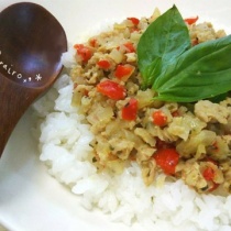 【レシピ】彩りワンプレート*鶏ひき肉とパプリカのバジル炒めごはん